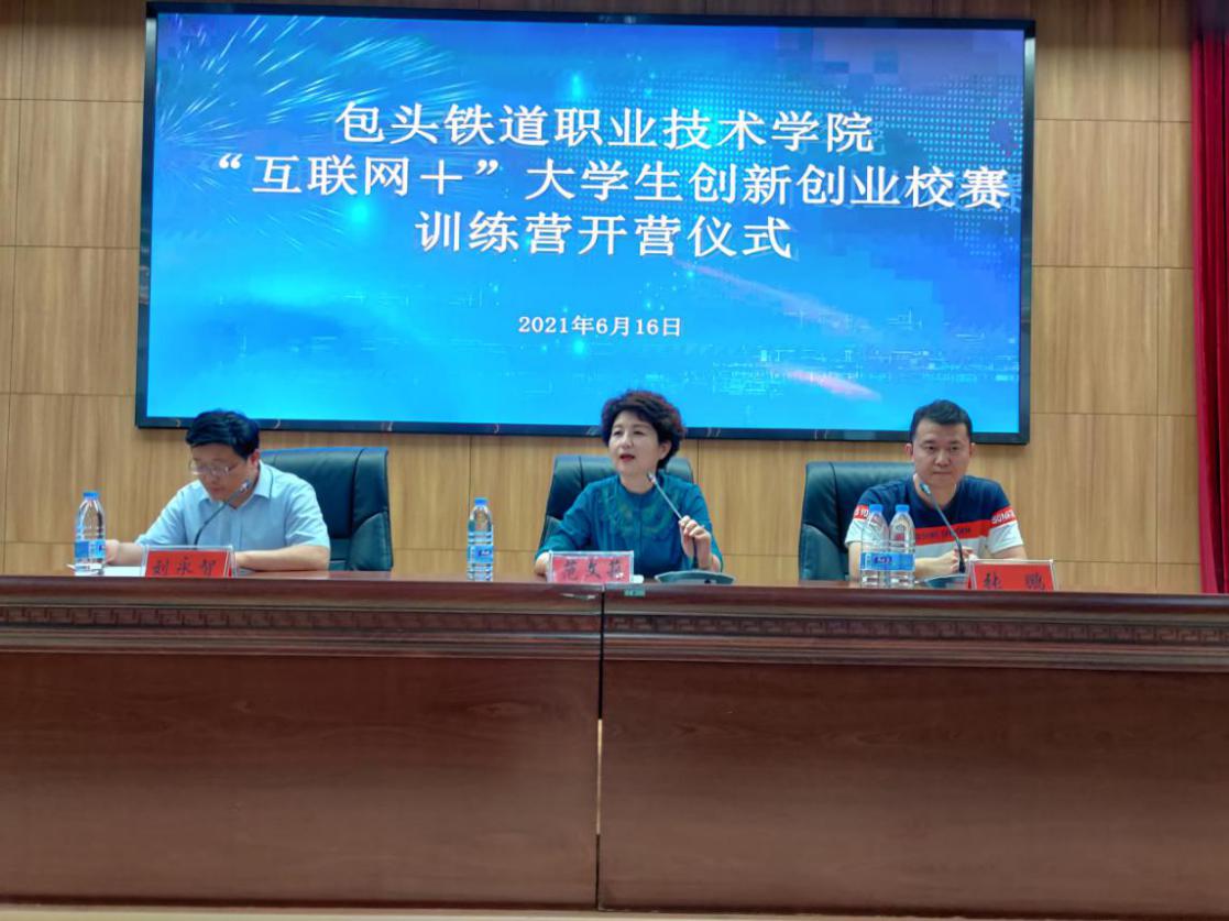 2021年6月16日18:30,包头铁道职业技术学院创新创业教育中心在勤政楼D309举行2021年包头铁道职业技术学院第七届“互联网+”大学生创新创业大赛训练营开营仪式。学院党委委员、学生工作处处长范文莉出席并做重要讲话。学院“互联网+”大学生创新创业校赛指导教师、创新创业导师代表和创新创业教育中心全体人员参加开营仪式;本次训练营共有165名学生营员参加培训。