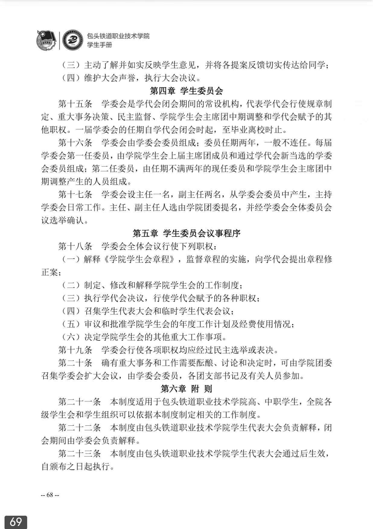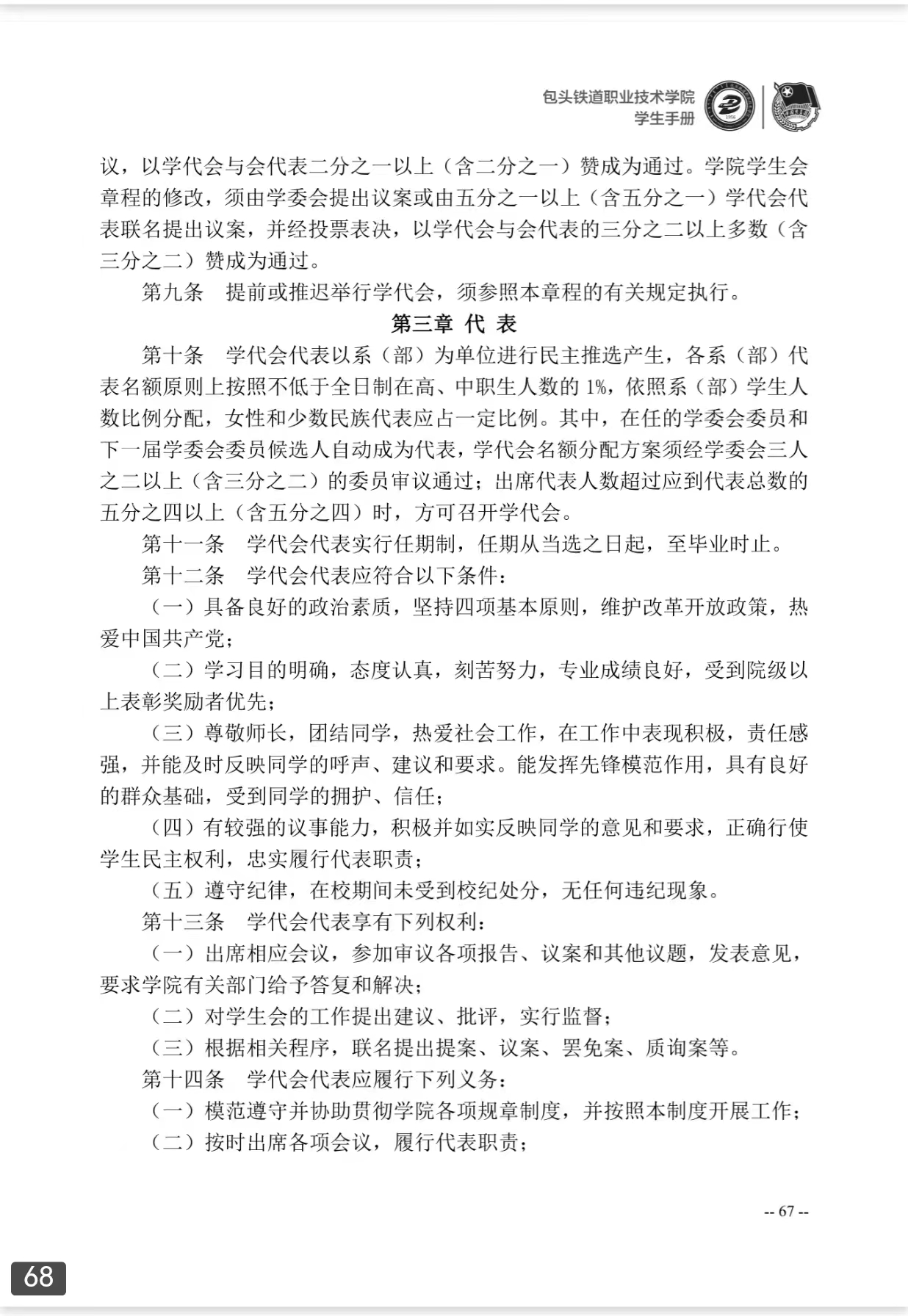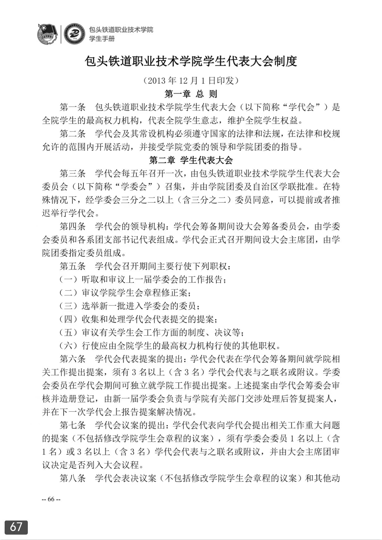 包头铁道职业技术学院学生代表大会制度
