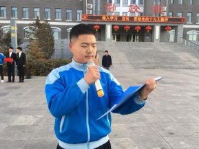 升旗结束后,我系学生代表何润泽同学进行了国旗下的演讲——《爱国在我身边》。他讲到,“爱国主义是我国各族人民团结奋斗的光辉旗帜,是推动我国社会历史前进的强大动力!”随后,他带领着同学们回顾了那些为国家抛头颅、洒热血的民族英雄,引起了同学们的共鸣,即使在微冷的清晨,却依旧热血澎湃。