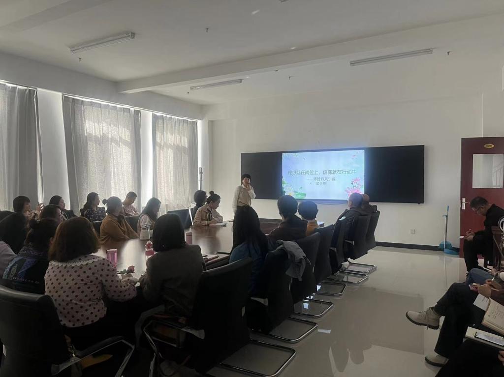 3月28日下午,在勤思楼529会议室,由梁少华老师作了主题为《理想就在岗位上,信仰就在行动中》师德师风讲座,基础部所有教师认真聆听,积极发言。