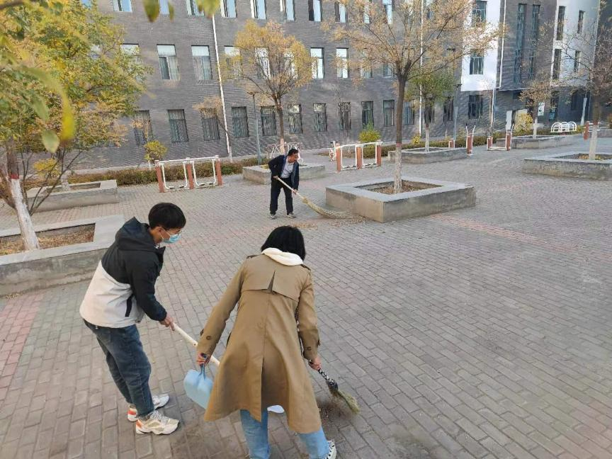 参与活动的22名党员对勤习楼G区一楼实训室门口的公共区域进行了彻底清扫。