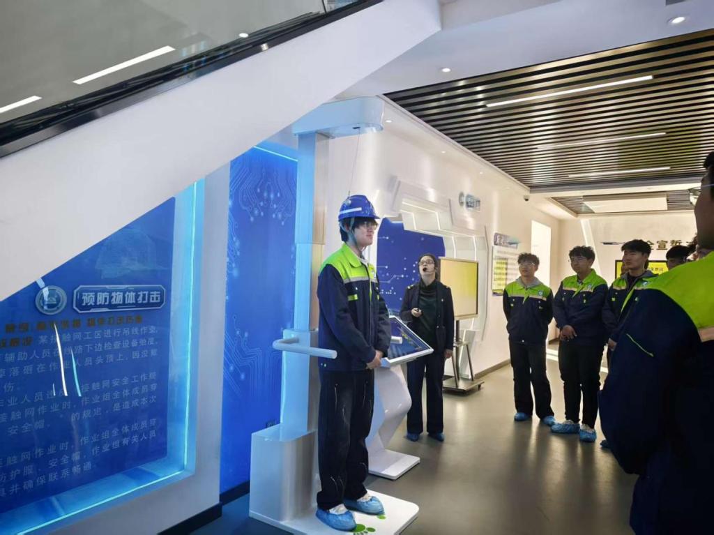 2026年3月18日,包头铁道职业技术学院24级凌云工匠班全体学员,在祁瑒娟、姚琛两位专业老师的带领下,走进包头供电段安全警示教育室,开展沉浸式铁路安全警示教育实践课,为校企协作开展的接触网工种实习(2周)拉开了序幕。包头供电段职教科科长任喜凤全程热情接待、细致讲解,以实景体验+案例剖析的形式,为学子们筑牢“安全第一、生命至上”的思想与行动双重防线。