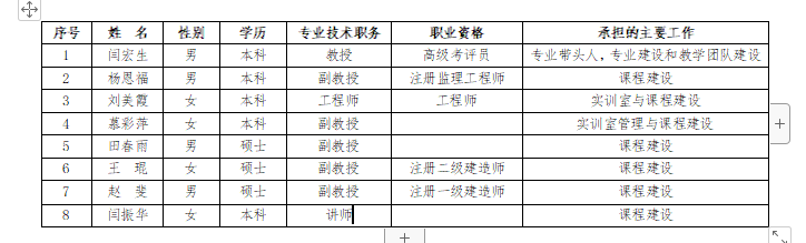 建筑工程系专任教师名册