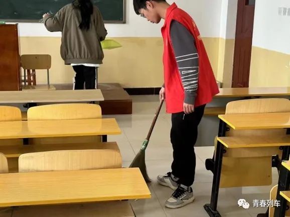本次活动由40名志愿者共同参与。活动开始,负责人为志愿者们分发劳动工具,并说明了清扫范围和要求。志愿者进入教室看见乱糟糟的桌椅,积极主动地进行整理。还有一部分志愿者将抹布和拖把进行了清洗。在打扫过程中,志愿者互帮互助、互相配合,经过两个小时的清扫,整个教室变得焕然一新。
