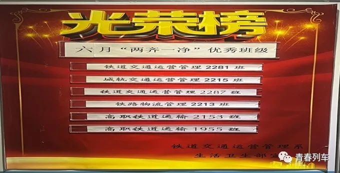 为营造文明修身氛围,引导广大学生养成良好生活卫生习惯,巩固“两齐一净”专项工作建设成果,营造整洁、优美、文明、卫生的学习环境,铁道交通运营管理系生活卫生部于六月开展“两齐一净”优秀班级评选活动。