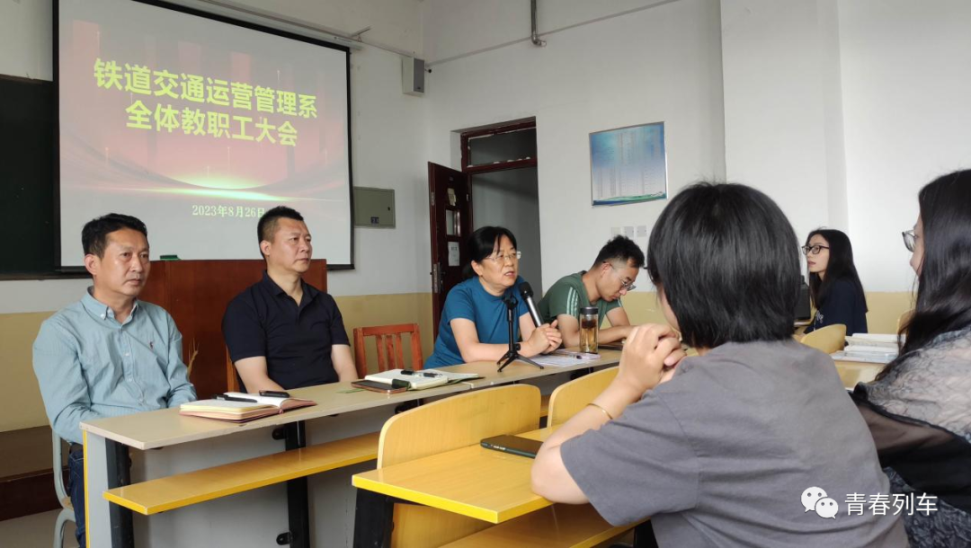 为了明确工作任务,确保铁道交通运营管理系新学期教育教学工作有条不紊开展,2023年8月26日,铁道交通运营管理系召开了2023年秋季新学期全系教职工工作会议。系领导班子对开学各项工作进行了安排部署,全系教职工参加了会议。