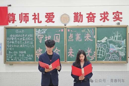 本次活动由团总支宣传部李梅、杨雨杰同学主持,以《守护国家安全,点亮未来之光》为主题,铭记历史,珍惜和平,从那段战火纷飞的岁月,从那段不能忘记的历史记忆,明白和平来之不易,安全需要我们去守护。我们要时刻保持警惕,提高防范意识,坚决维护国家的安全稳定。活动开始,由团总支宣讲团王科新,赵紫晴同学与苏警官一起为大家朗诵《维护国家安全,共筑钢铁之长城》。