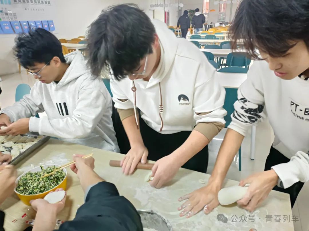 活动现场,大家热情高涨,分工合作,一部分同学负责擀饺子皮,另一部分同学负责包饺子,每张桌子上都摆满了面粉、馅料、擀面杖等工具。大家各显身手,将面团揉得光滑细腻,随后熟练地搓成条、切成小块,再擀成一张张圆圆的饺子皮,最后将馅料放入包好。不久,托盘上便摆满了各式的饺子,每一枚都是大家亲手制作的结果,每个人都热情洋溢地展示着自己的劳动成果。当热气腾腾的饺子出锅时,整个房间都弥漫着浓郁的香味。大家围坐在一起,品尝着自己亲手包的饺子,脸上洋溢着满足和幸福的笑容。