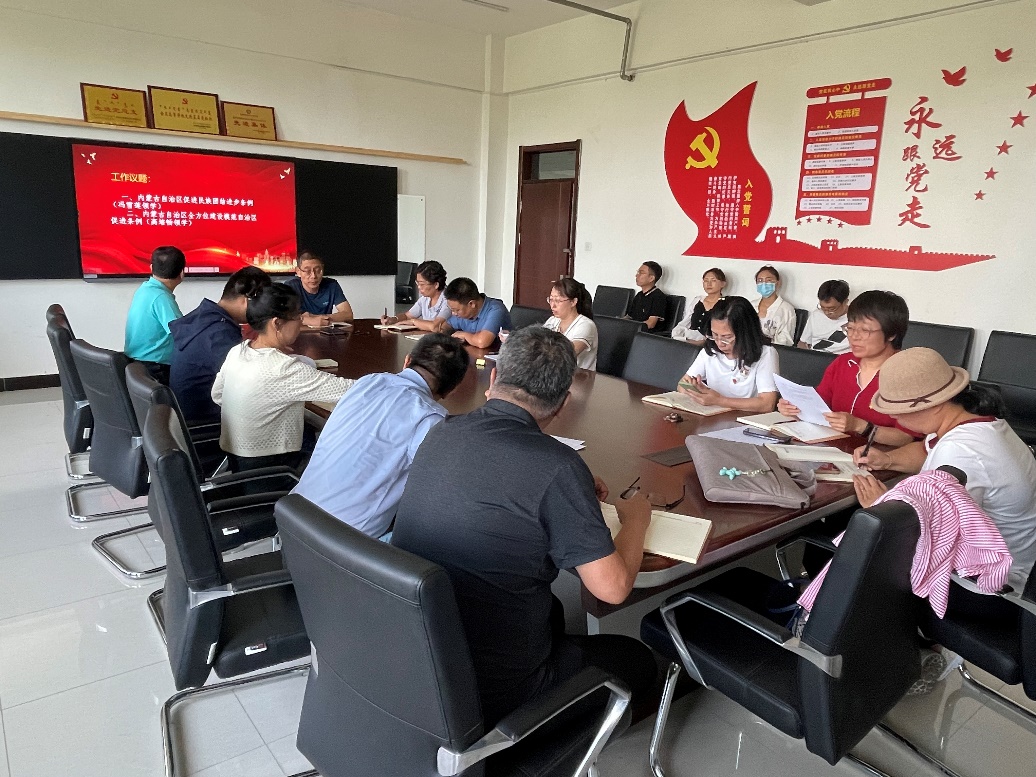 之后,分别由冯雪莲同志和高培畅同志领学《内蒙古自治区促进民族团结进步条例》和《内蒙古自治区全方位建设模范自治区促进条例》,宣传民族政策法规、铸牢中华民族共同体意识等民族团结知识,增进全系党员干部对民族政策和铸牢中华民族共同体意识的理解和支持,营造民族团结和谐的良好氛围。
